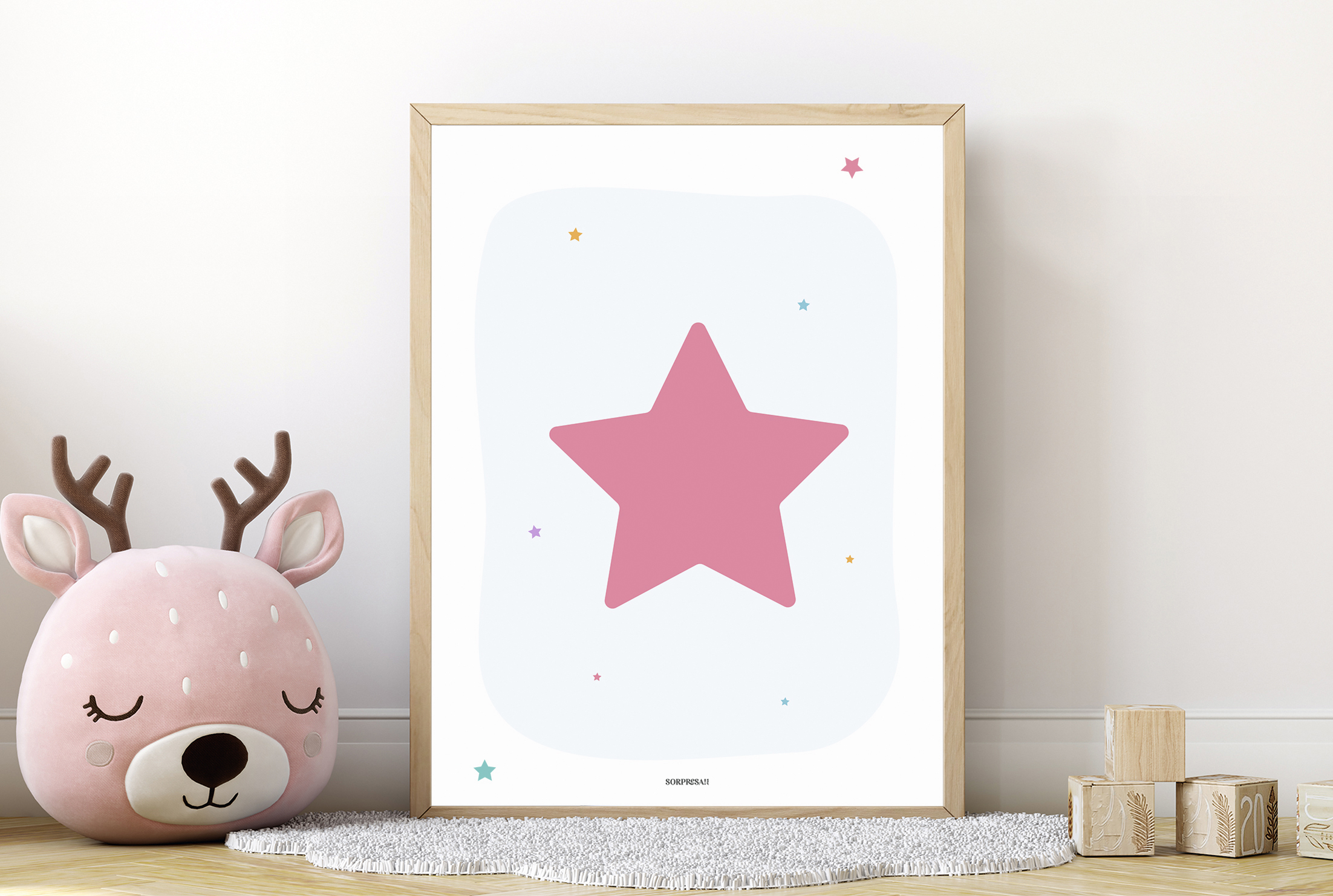 Izar larrosadun lamina koloretsua ezin hobea da haurren logelari ukitu polit eta alaia emateko. Diseinu bizi eta goxoak espazioa berezia bilakatzen du.